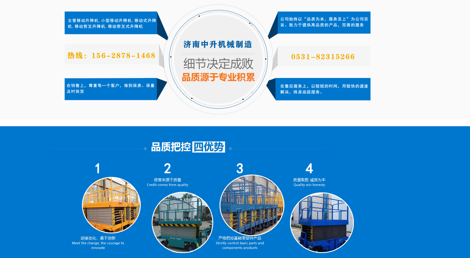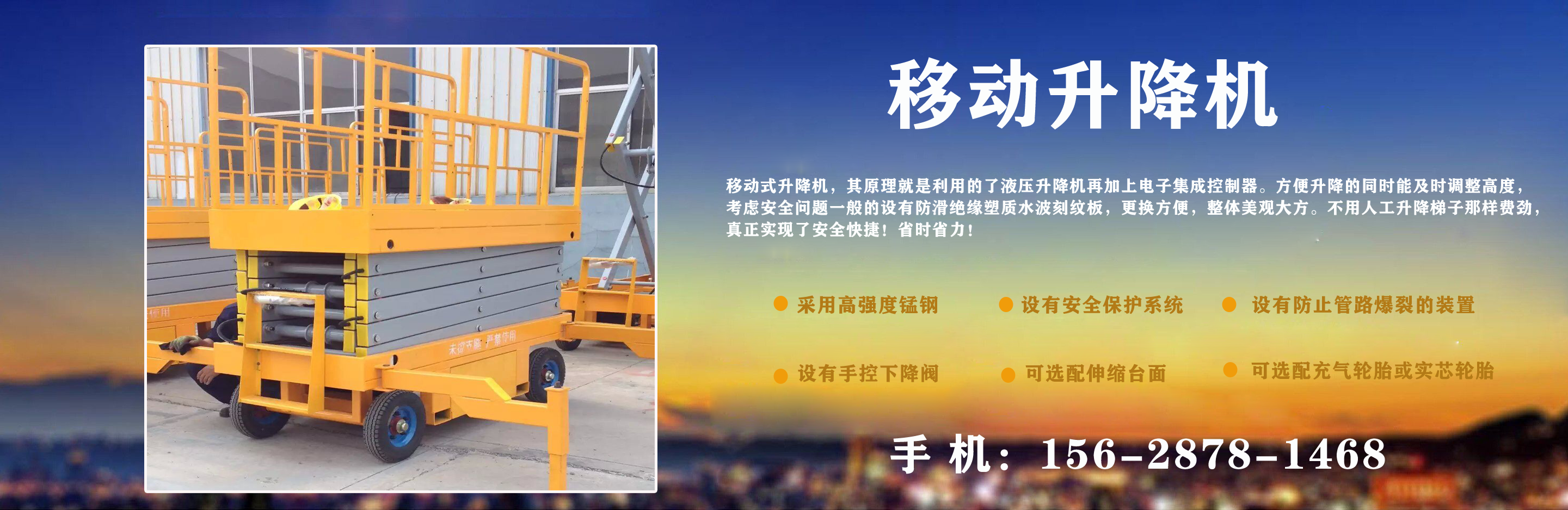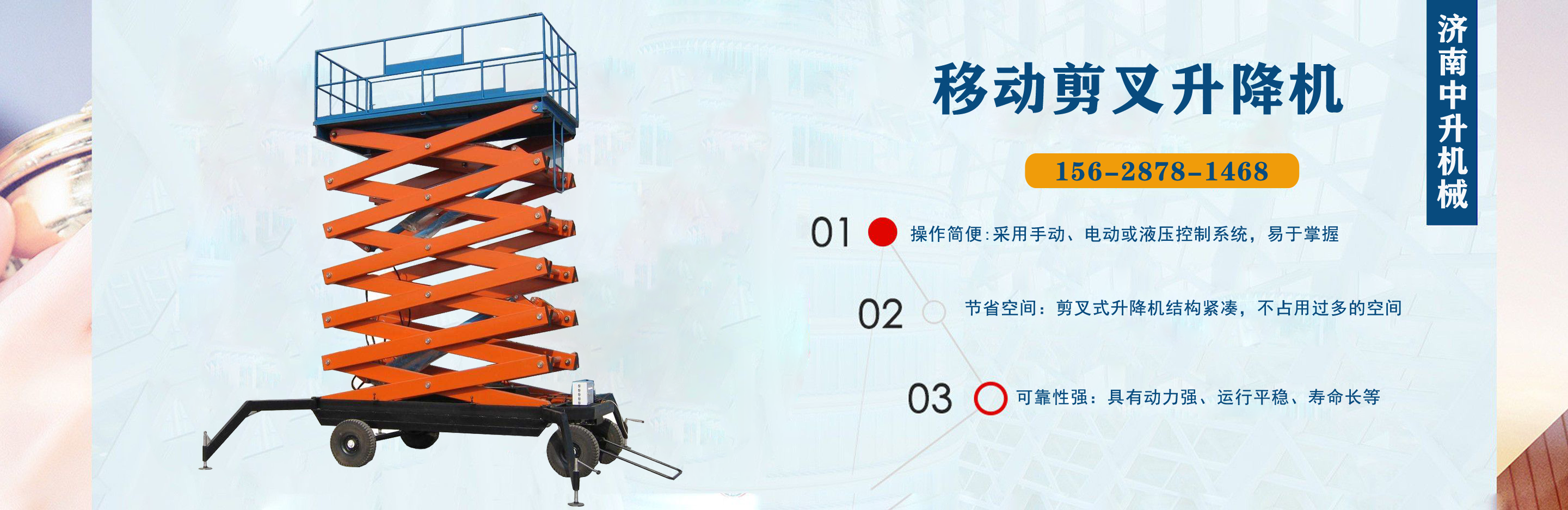 濟(jì)南中升機(jī)械制造有限公司主營(yíng)移動(dòng)升降機(jī),小型移動(dòng)升降機(jī),移動(dòng)式升降機(jī),移動(dòng)剪叉升降機(jī),移動(dòng)剪叉式升降機(jī)等產(chǎn)品,信譽(yù)良好,歡迎前來(lái)咨詢(xún)訂購(gòu)! 在銷(xiāo)售上,尊重每一個(gè)客戶(hù),做到保質(zhì)、保量及時(shí)供貨;在售后服務(wù)上,以較短的時(shí)間,用較快的速度解決,終身追蹤服務(wù)。 公司始終以“品質(zhì)為本,服務(wù)至上”為公司宗旨。致力于提供高品質(zhì)的產(chǎn)品,完善的服務(wù),快捷的供貨,無(wú)論您身處何方,都能感受到我們的優(yōu)良服務(wù)。客戶(hù)至上,誠(chéng)信為本。 歡迎各界朋友來(lái)電,來(lái)函垂詢(xún),選購(gòu)!...
